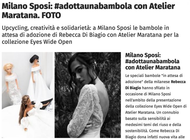 Upcycling, creatività e solidarietà: a Milano Sposi le bambole in attesa di adozione di Rebecca Di Biagio con Atelier Maratana per la collezione Eyes Wide Open…